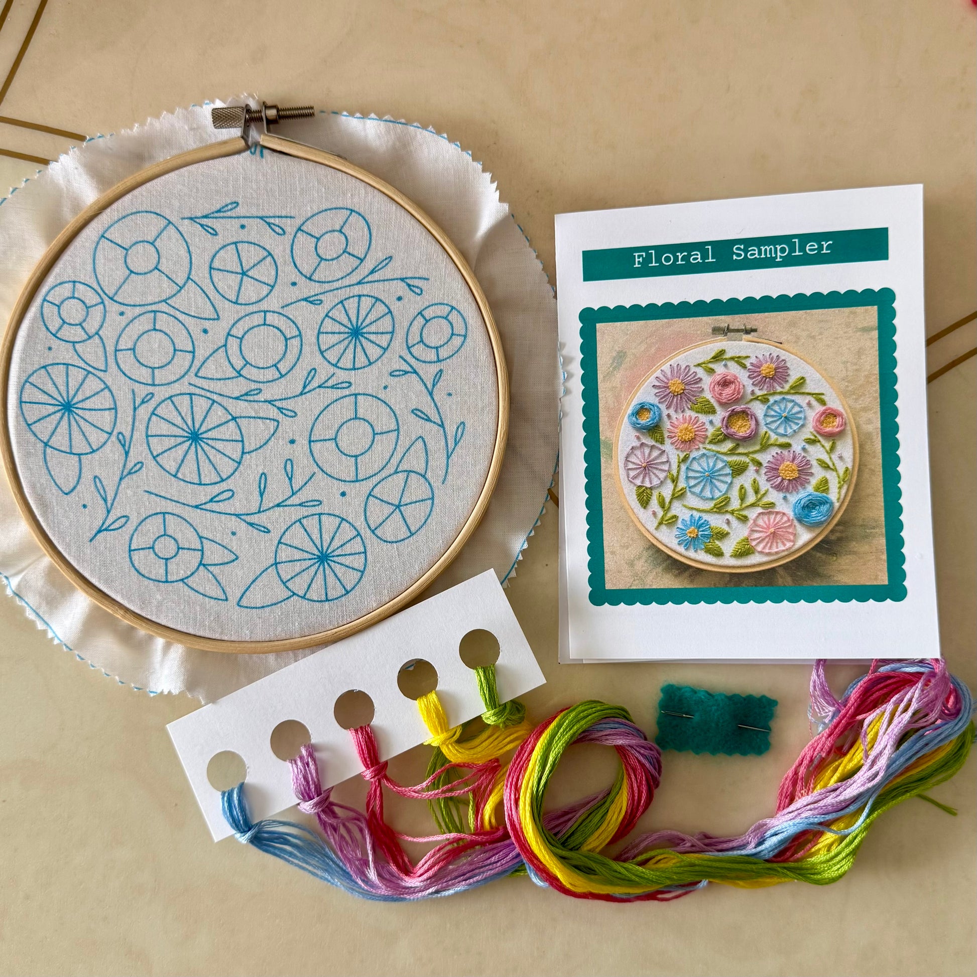 Floral embroidery may be traditional, but it's anything but boring! The Floral Sampler is a great introduction to basic embroidery stitches and is a classic design to add to any embroiderer's collection. Stitch up your own garden of fluffy roses, dainty daisies, and lots of greenery! This kit includes everything you need to start stitching - just add scissors!